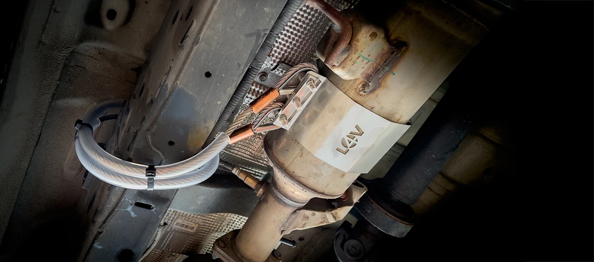 The L4V Cat Guard has been specifically designed and tested to reduce the risk of theft of Catalytic Converters. It provides a heavy-duty shield that is fixed together using shear bolts and mounted to the chassis using high-security stainless steel cables. Precious metals found in the catalytic converter means that these are increasingly targeted by thieves. Commercial vehicles are particularly vulnerable to this attack as some catalytic converters are susceptible to quick and easy removal.