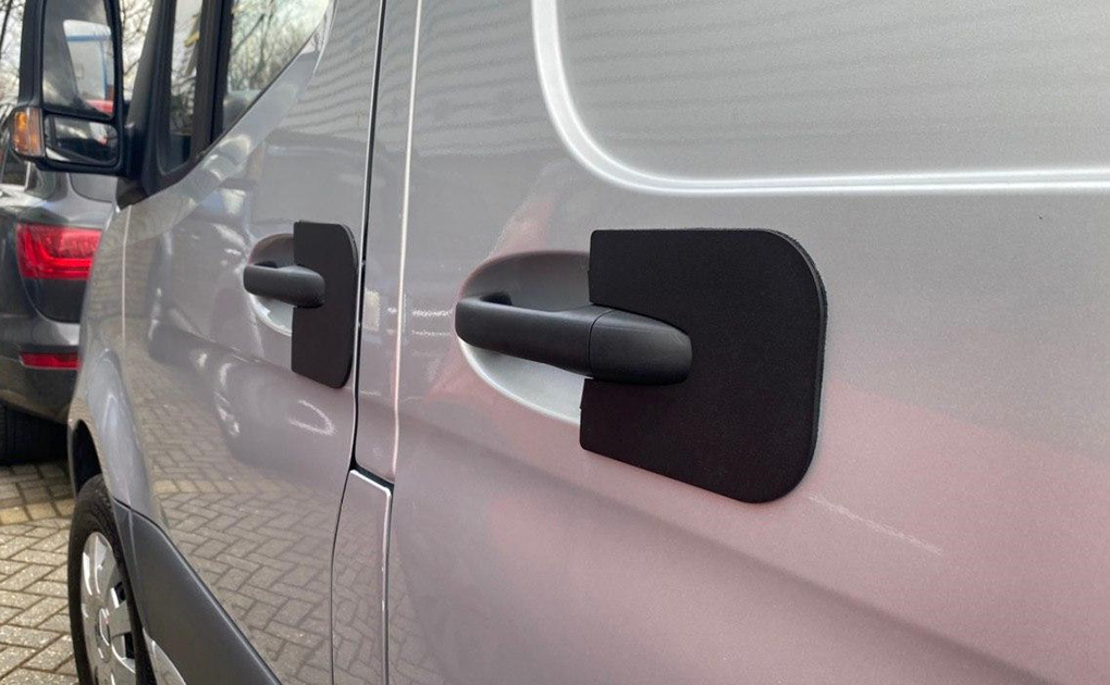 Break-ins can occur as a result of the handle being spiked to gain access to the internal mechanisms that open the door. The L4V Handle Shields are door-specific, and reduce the risk of this method of attack.